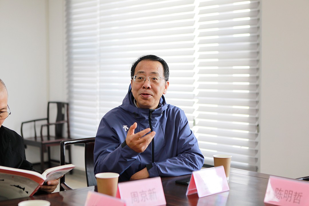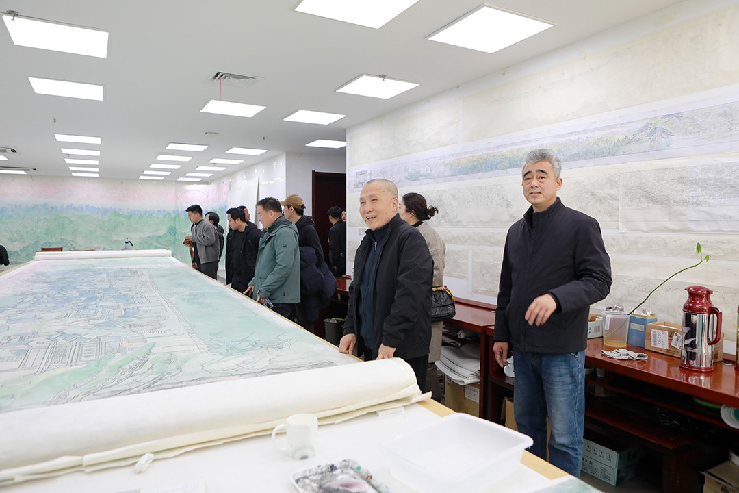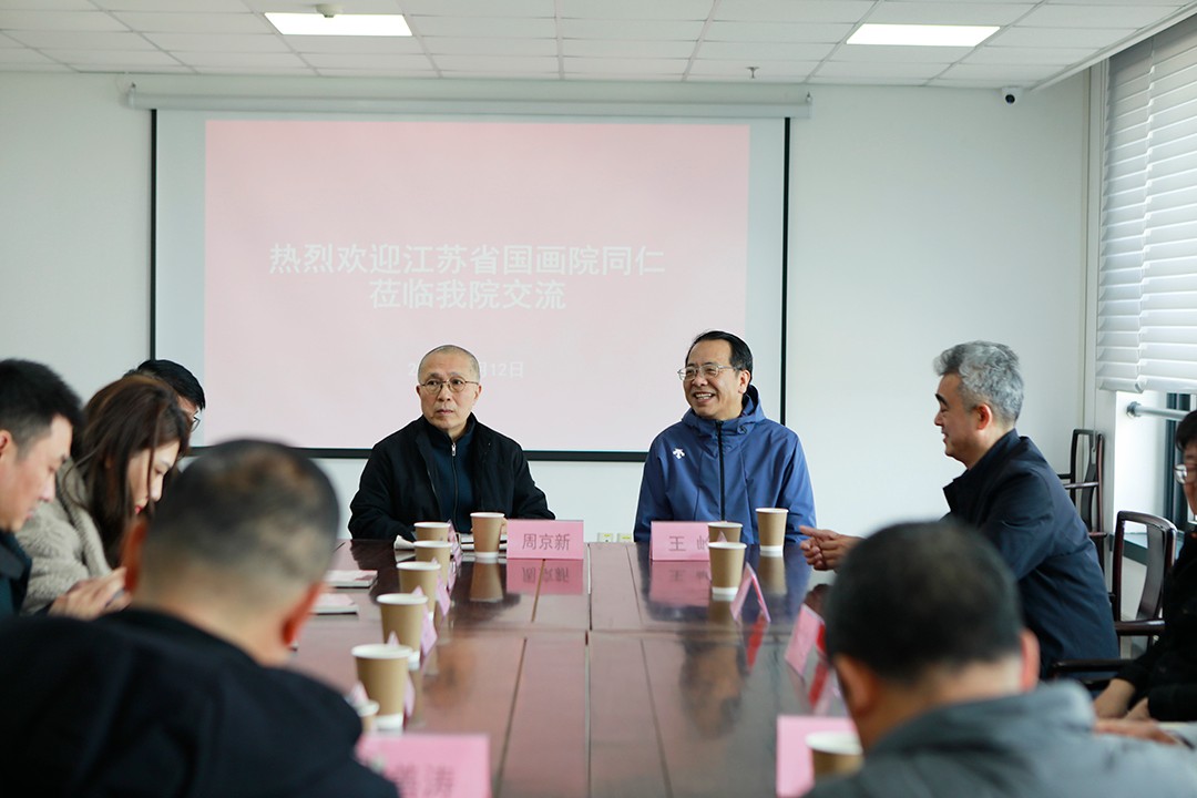 展览开幕式之后,安徽省书画院和安徽省美术馆的艺术家们与我院艺术家进行了座谈,大家集体观摩了安徽省书画院全体书画家正在创作的大幅黄山题材中国画作品,并请周京新名誉院长对作品进行了点评与指导,我院画家也在观摩中学习与研讨,座谈气氛融洽、交流透彻开怀,充分呈现了皖地雅韵与金陵风骨的交汇互融。